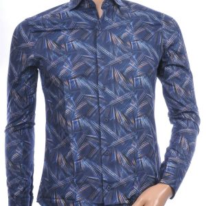 Corrino Italiaanse Slim Fit Heren Overhemd met Bloemen en Bladeren Dessin – Navy