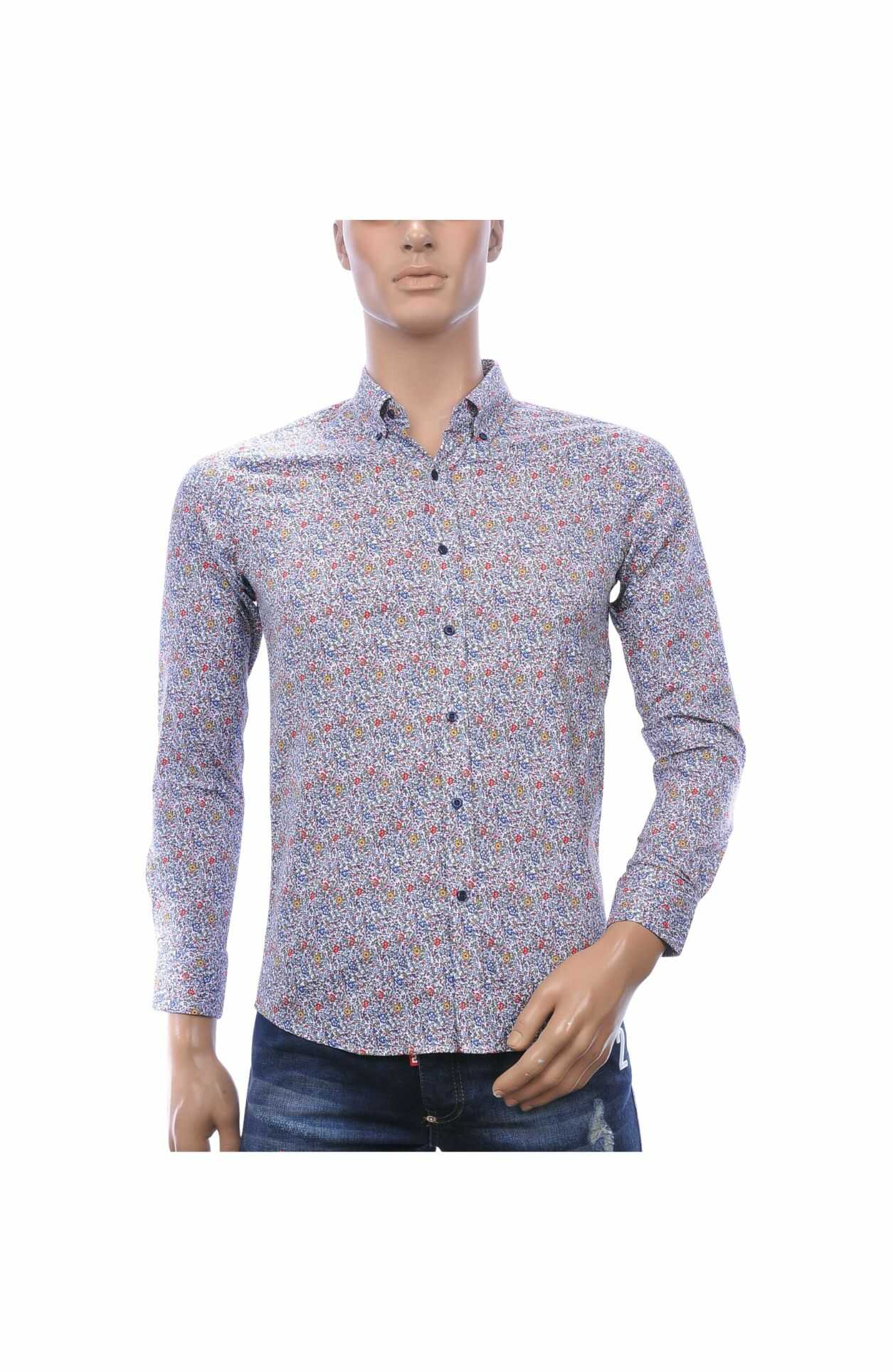 Slim fit heren overhemd met allover bloemenprint
