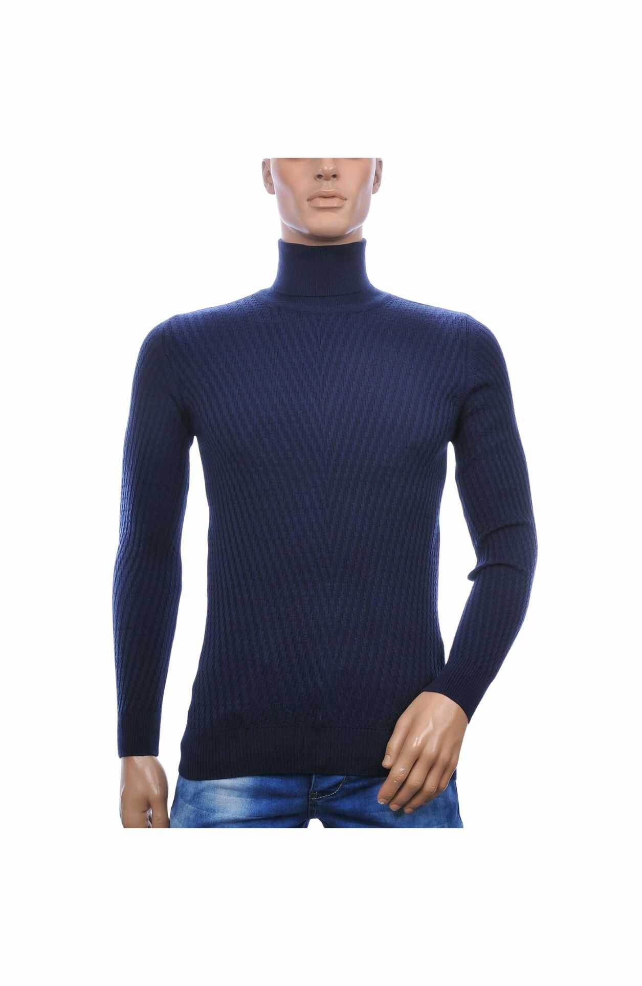 Club Ju Stijlvolle Heren Coltrui Met Gevlochten Gebreid Dessin – Navy