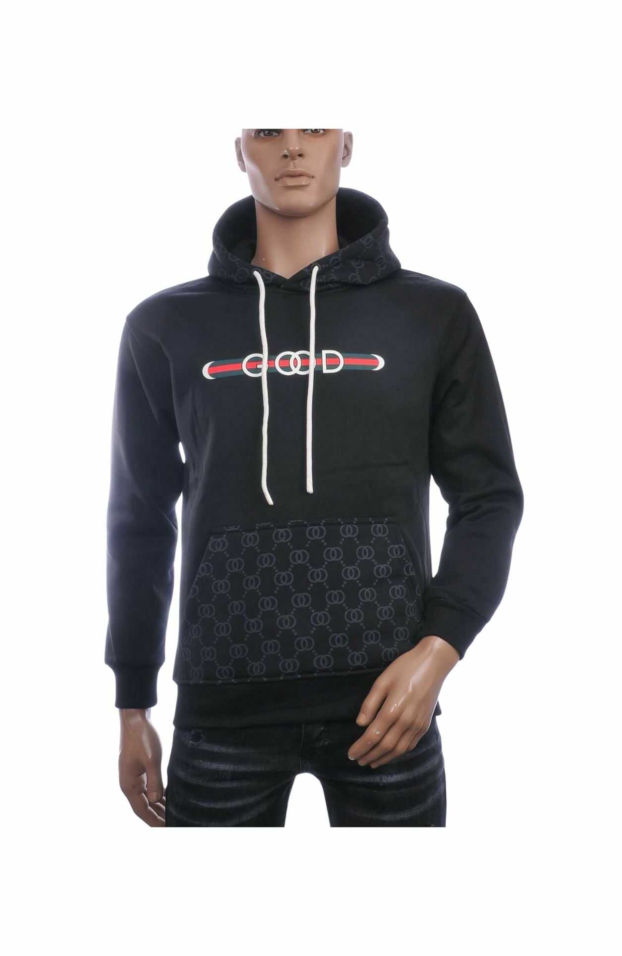 De hoodie heeft een unieke GOOD-print op de borst, gecombineerd met een stijlvolle rood-groen streep en een monogram kangoeroezak. Perfect voor dagelijks gebruik, school, werk, sport en casual momenten.