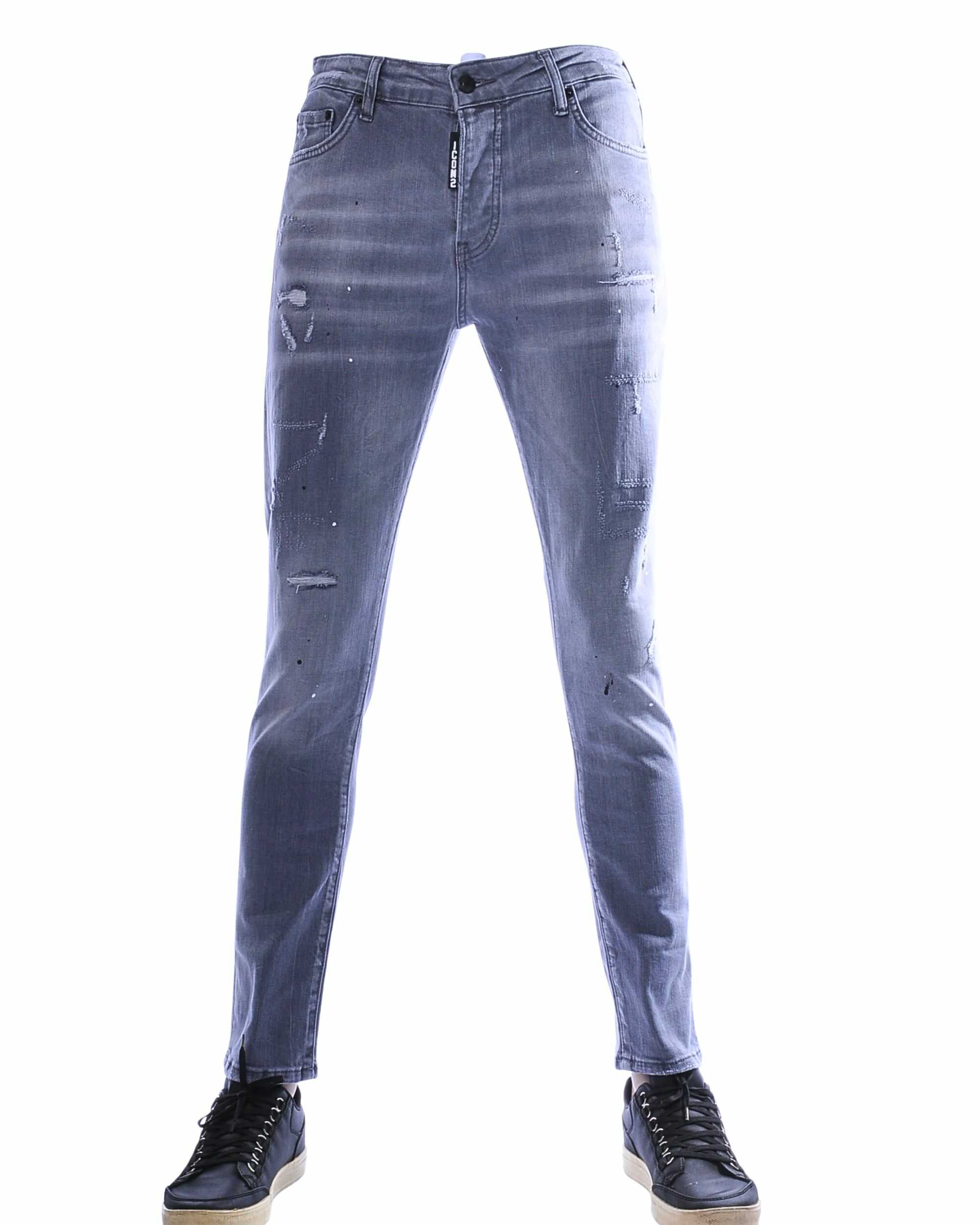 ICON2 heren jeans slim fit grijs paint is dé perfecte jeans voor mannen die op zoek zijn naar een unieke, moderne en comfortabele denim met een uitgesproken streetwear uitstraling. Deze premium jeans combineert een stijlvolle grijze wassing met opvallende zwart-witte verf spetters en een strakke slim fit pasvorm.
