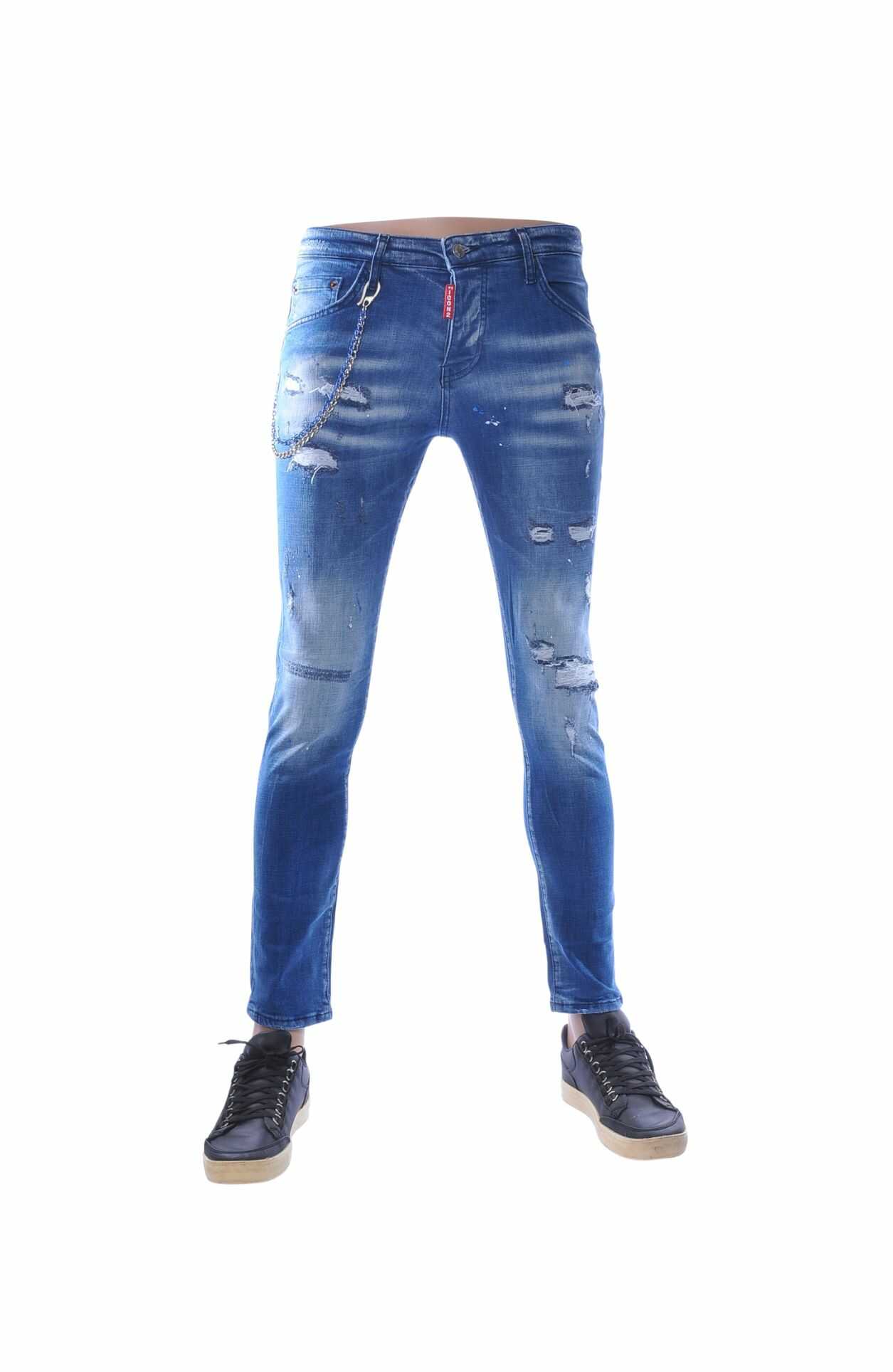 De decoratieve ketting aan de voorkant van de broek versterkt de streetwear look en geeft de jeans een unieke stijl. Hierdoor is deze broek ideaal voor mannen die graag een modieuze en krachtige uitstraling willen creëren.
