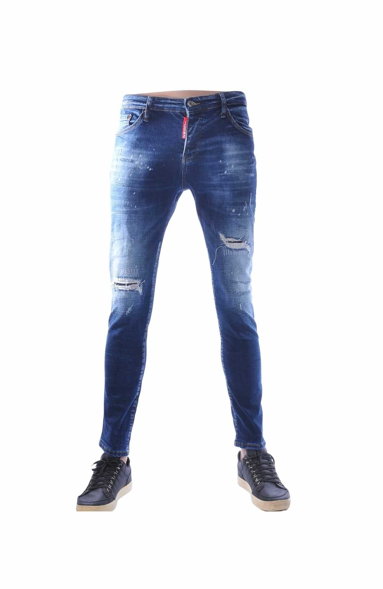 ICON2 Trendy Gescheurde Slim Fit Stretch Heren Jeans – Blauw