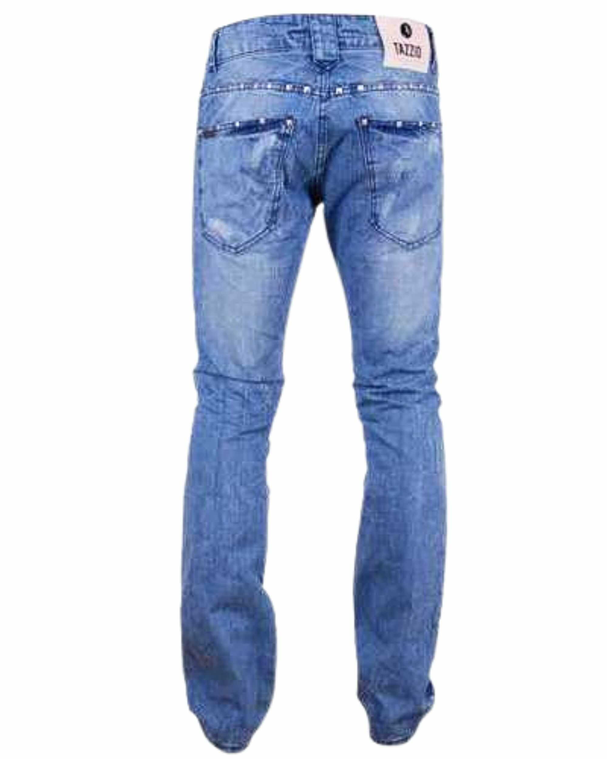 TAZZIO heren jeans met studs is dé keuze voor mannen die op willen vallen met een stoere en moderne uitstraling. Deze TAZZIO blauwe jeans combineert een unieke look met comfort en kwaliteit. Daardoor ontstaat een perfecte broek voor dagelijks gebruik én speciale gelegenheden.