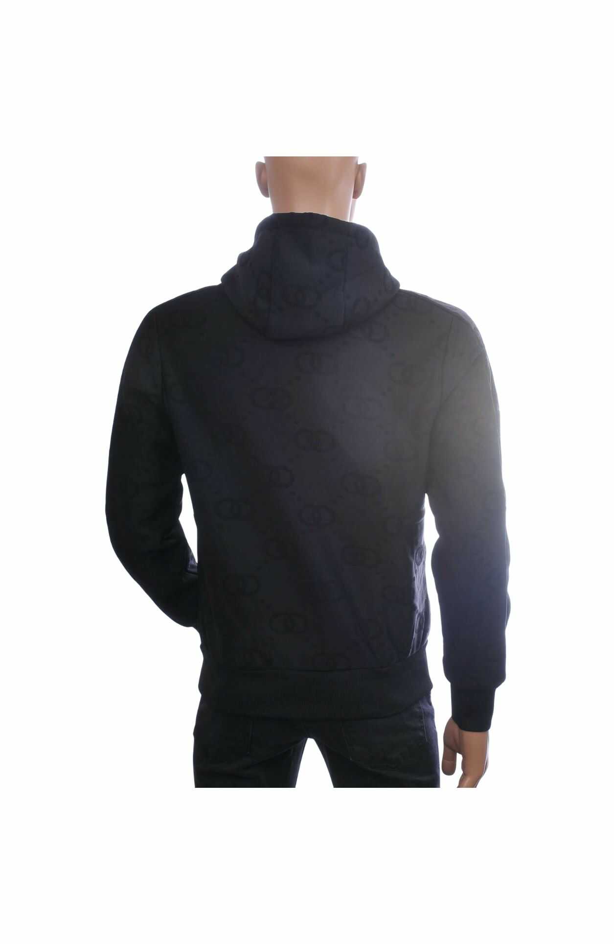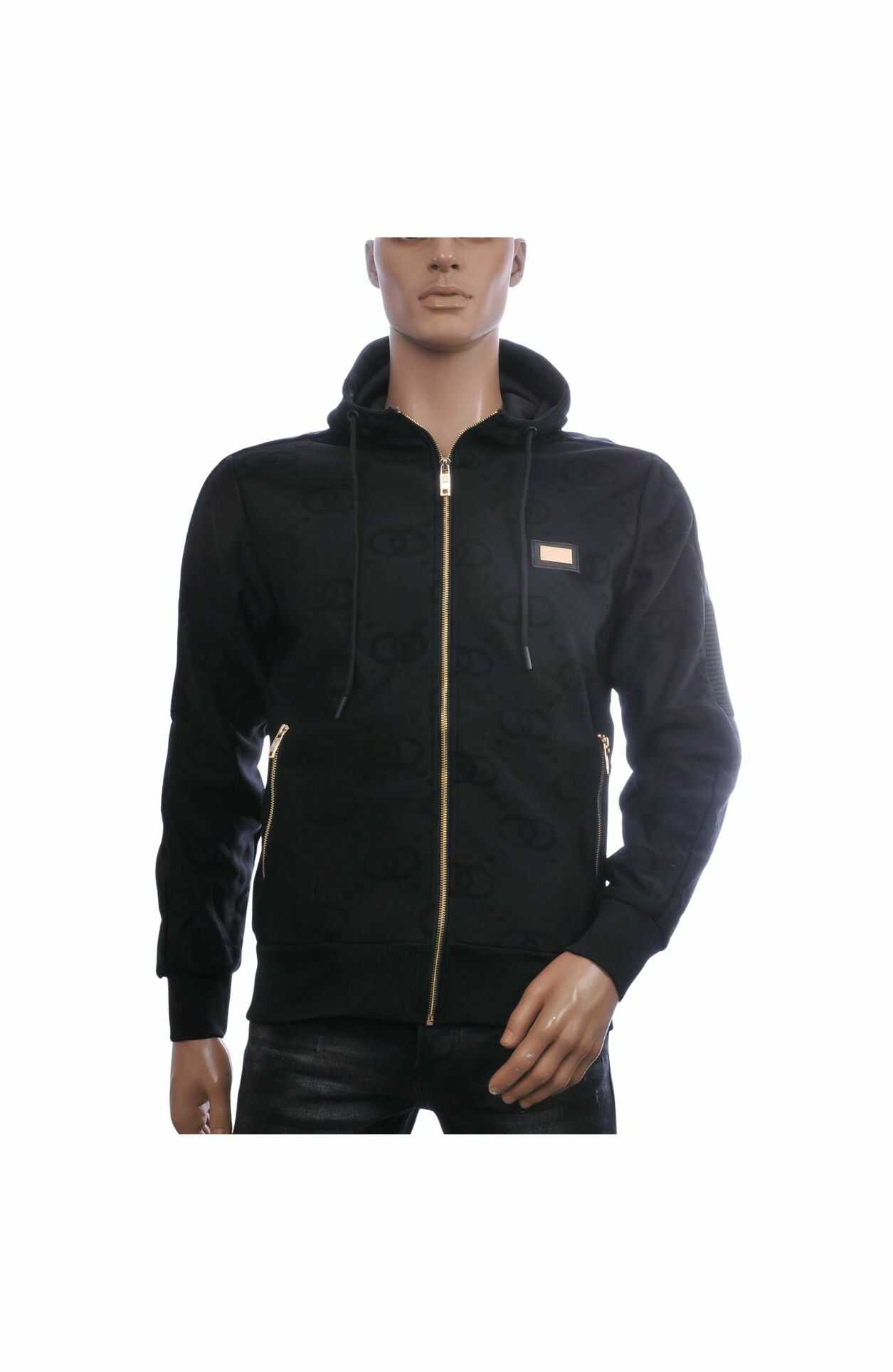 TOP-STAR Luxe Heren Sweatvest met Capuchon – Zwart | All-over 2-Cirkel Dessin | Gouden Rits